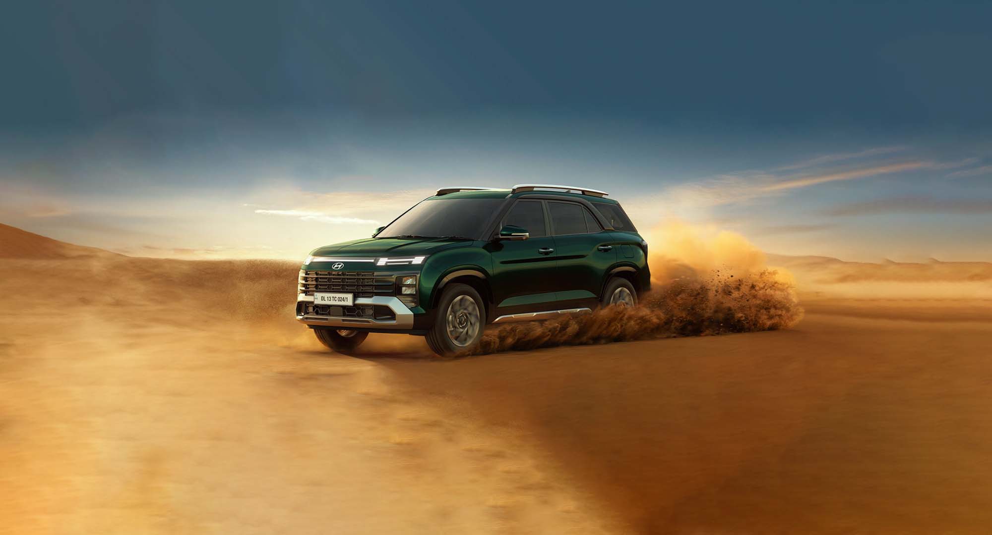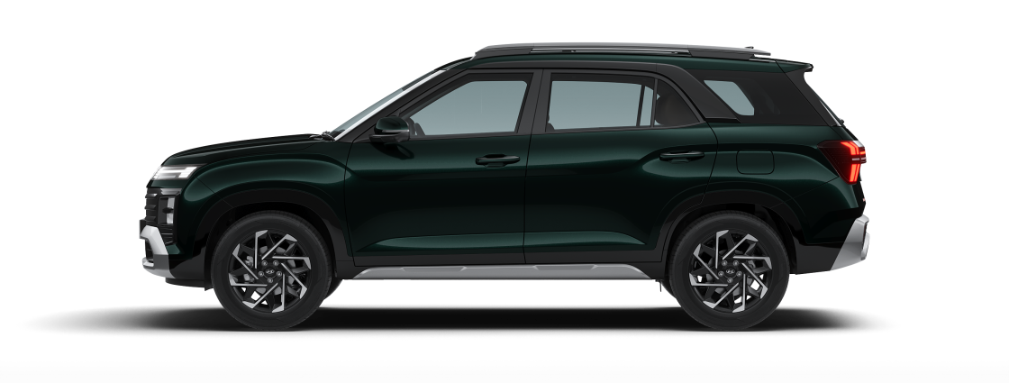 The bold new Hyundai ALCAZAR car is all about making a statement. Its imposing new dark chrome radiator grille design exudes confidence, while the quad beam LED headlamps technology pierces the night with exceptional clarity. The horizon LED positioning lamps and H-shaped DRLs run along the front, while rear horizon LED lamps grace the back, adding a touch of futuristic flair. The bold design extends to the sides, with painted black body cladding that emphasizes its muscular stance and readiness for adventure. All-new wheel design with R18 diamond cut alloys complete the look, reflecting its sophistication and attitude.